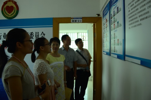 挂牌仪式结束后,梧州保险行业人民调解委员会工作人员邀请各单位的领导到梧州保险行业人民调解委员会的工作场所进行参观指导并拍照留念。