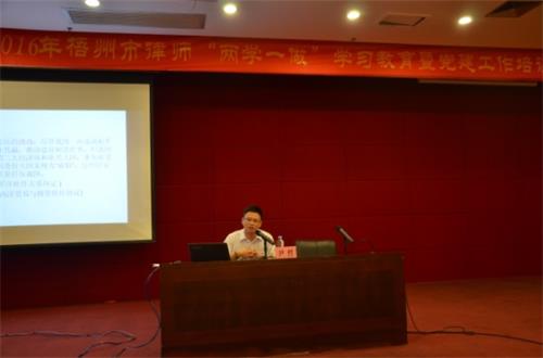 培训班上梧州市非公有制经济组织和社会组织党工委副书记尹哲就“两学一做”学习教育和党建基础知识为律师党员进行授课,梧州学院文法学院法学教研室主任、法学教授骆庆国结合实际详细讲解了《律师职业道德和执业纪律规范》,梧州市中级人民法院民三庭副庭长朱卓慧与大家分享了办理民事侵权案件中所遇到的问题。他们结合典型的案例和经验,以生动的讲解受到广大参训人员的热烈欢迎。参训人员纷纷表示此次学习培训受益良多,拓展了专业知识,也增强了日后做好律师工作的决心。