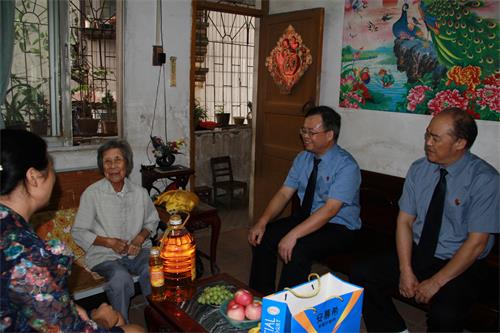 在重阳节来临前夕,梧州市万秀区人民检察院检察长蓝兴瑞带领3名检察干警来到大学社区开展重阳节敬老慰问活动,向黄秀群、陈沁馨等3位年过九旬的高龄老人送上节日的问候。