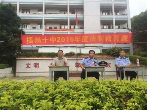 为增强学生的法制意识和安全防范意识,避免校园暴力和安全意外的发生,9月29日,龙湖派出所组织警察蜀黍来到梧州市第十中学,为童鞋们上了一堂法制安全教育课。