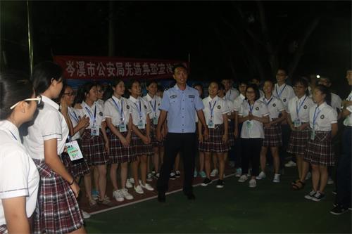 为推广宣传岑溪公安警察好故事,传递警营正能量,培树队伍好形象,9月28日晚上,岑溪市公安局在岑溪中学山顶灯光球场开展先进典型推介活动,岑溪中学全校师生4500多人参加了活动。岑溪市公安局出入境大队教导员、宣传部门负责人陈远文、岑溪市公安局城中派出所教导员陈雨、法制民警卢健出席了活动。岑溪中学副校长黄庆坤主持了此次活动。