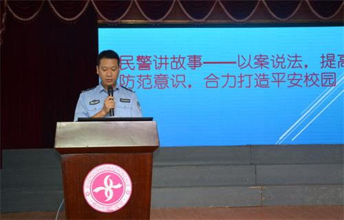 民警讲故事,以“身边的案例”向师生阐述如何自我保护及防止被盗抢、诈骗等
