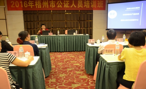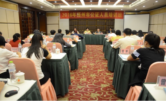 10月25日,梧州市司法局举办2016年全市公证人员培训班,分管公证工作的市司法局党组成员、副局长吴丽丽,市司法局公证管理科正、副科长出席开班仪式。来自各县(市)司法局公证管理人员、全市各公证机构公证人员共30余人参加了此次培训。