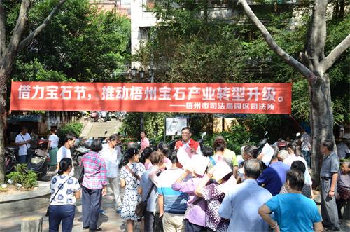 梧州市第十三届宝石节将于10月28日隆重开幕。为迎接宝石节,10月26日上午,园区司法所在新兴菜市举行普法活动,宣传梧州市宝石加工园区建设成就和发展动态,引导广大市民关心支持人工宝石产业发展。