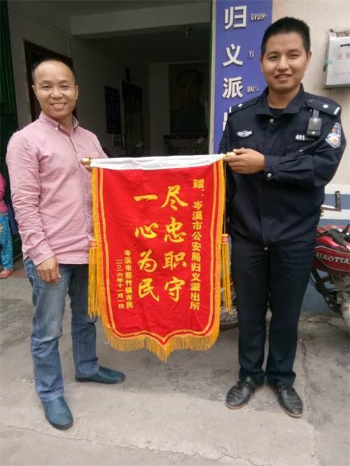 李某送锦旗到岑溪市公安局归义派出所以表感激之情
