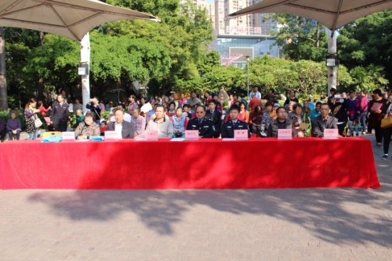 万秀区司法局局长魏钊生、万秀区富民街道办事处副书记石继文以及富民辖区的四位社区法律顾问、万秀区司法局全体人员和辖区居民参加了活动