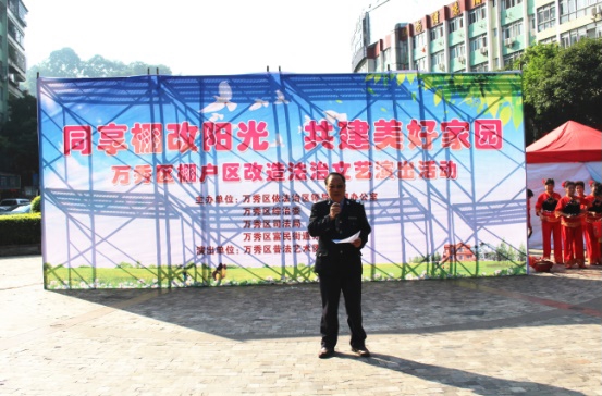 为积极、稳妥、快速推进万秀区棚户区改造工作,使广大居民能够深入了解棚户区改造的重要意义,了解棚户区改造的相关程序和法律法规,积极配合和支持改造工作。11月4日上午,万秀区依法治区领导小组办公室、万秀区综治委、万秀区司法局、万秀区富民街道办事处于一中街心花园联合举办以“同享棚改阳光,共建美好家园”为主题的棚户区改造法治文艺演出及法律咨询宣传活动,万秀区司法局局长魏钊生、万秀区富民街道办事处副书记石继文以及富民辖区的四位社区法律顾问、万秀区司法局全体人员和辖区近千名居民参加了活动。