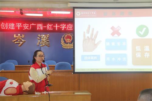 为进一步提高岑溪市公安局民警、协警在执勤处突中防范避险和自救互救能力,普及应急救护知识,提高应急救护技能。11月1日,岑溪市公安局邀请梧州红十字会专家在六楼会议室举办应急救护知识培训班。刑侦、治安、经侦、禁毒、特巡警、城区派出所等部门民警、协警参加了培训班。