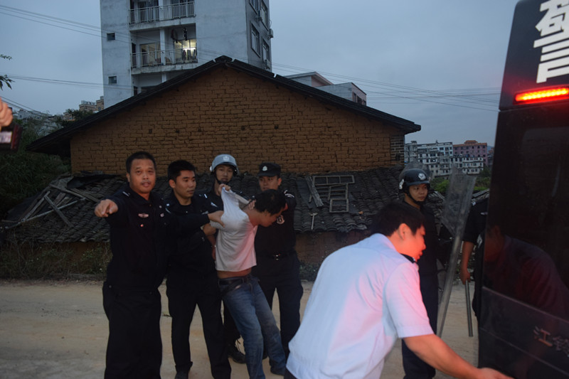 17时许,特巡警大队民警前来支援,经过简短的碰头交流后,决定对李某采取强攻制服。在征得李某家属的同意后,几名特警手持盾牌猛推开房门,以迅雷不及掩耳之势将手拿铁管企图反抗的李某用盾牌逼至墙角,夺走其手握用于伤人的铁管,并抓住他的脚将其拖倒在地上。但身强力壮的李某仍不肯就范,在地上粗暴的反抗,但面对众多且训练有素的民警和特警,终于因体力不支而被制服。目前,李某已被送至第三人民医院就医。