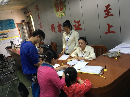 早上,一对年轻的夫妻带着他们的小女儿来到市公证处办理出生公证,市公证处主任黄洁玲同志热情接待了他们。公证人员首先使用身份证阅读器录入了当事人的身份信息,使用平板扫描仪录入当事人户口本、出生证、结婚证等证据材料,办证系统自动生成电子版申请表、承诺书、告知书、笔录、公证书等文稿;随后通过翻译管理平台进行翻译、校对;最后通过审批程序对该公证事项及全部档案材料进行电子审批。通过使用办证系统办理业务,当事人在当天上午就拿到了公证书。
