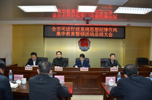 今年8月至10月,根据市委政法委部署,全市司法行政队伍开展思想纪律集中教育整顿活动。会上,市司法局党组成员、纪检组长罗振业做了活动总结讲话。全市司法行政系统各单位(科室)注重加强组织领导,精心安排部署活动,采取抓学习、抓督查、抓查摆、抓剖析、抓整顿等有效措施,使得活动有序开展,干部职工思想认识进一步提高,纪律意识进一步增强,工作作风进一步转变,服务群众能力进一步提升,活动成效显著。