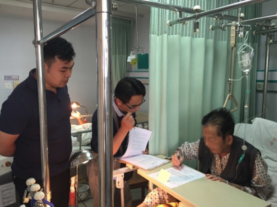 公证支部入党积极分子汤海同志带领市公证处公证人员到红会医院为老人上门办理公证