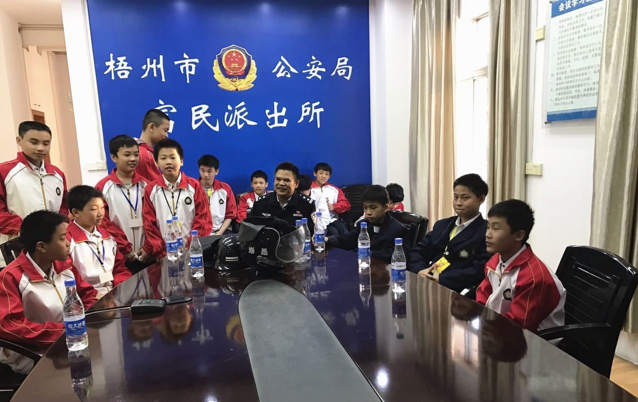 2016年11月29日下午,梧州市第五中学初一学生代表在校领导的带领下来到梧州市公安局富民派出所参观。
