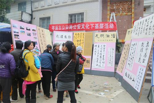 此次活动共展示了岑溪市公安局民警、辅警创作的36幅优秀书法作品、40幅摄影作品,迎来了大批群众驻足观看,大力弘扬了岑溪公安忠诚为民、拼搏奋进的精神风貌,充分反映出民警队伍的文化底蕴和文化修养,当日中午的公安文化下基层活动达到了预期效果,取得了明显成效。