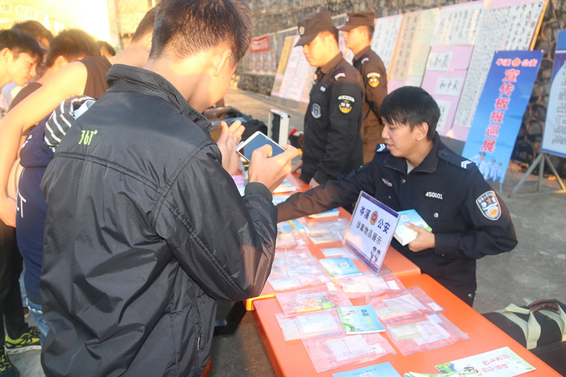 为进一步密切警民关系,宣传推介第二届广西“最美警察”候选人唐耀华、朱俊源的先进事迹,宣传安全感满意度调查测评知识,努力提升群众的安全感满意度。11月28日,岑溪市公安局组织宣传、刑侦、经侦、禁毒、交警、特巡警、出入境、户政、城北派出所等警种民警、协警,走进岑溪市中等专业学校开展警察公共关系暨广西“最美警察”候选人宣传推介活动。
