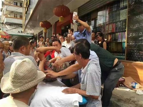 罗石深同志协助医护人员抢救突然发病倒地的妇女