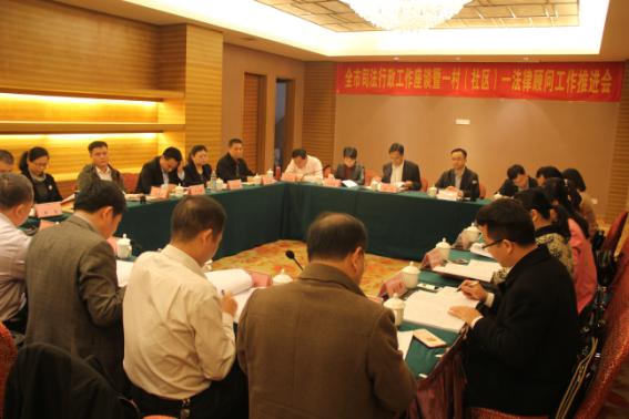 与会人员听取工作人员介绍安宁村的法律顾问工作情况