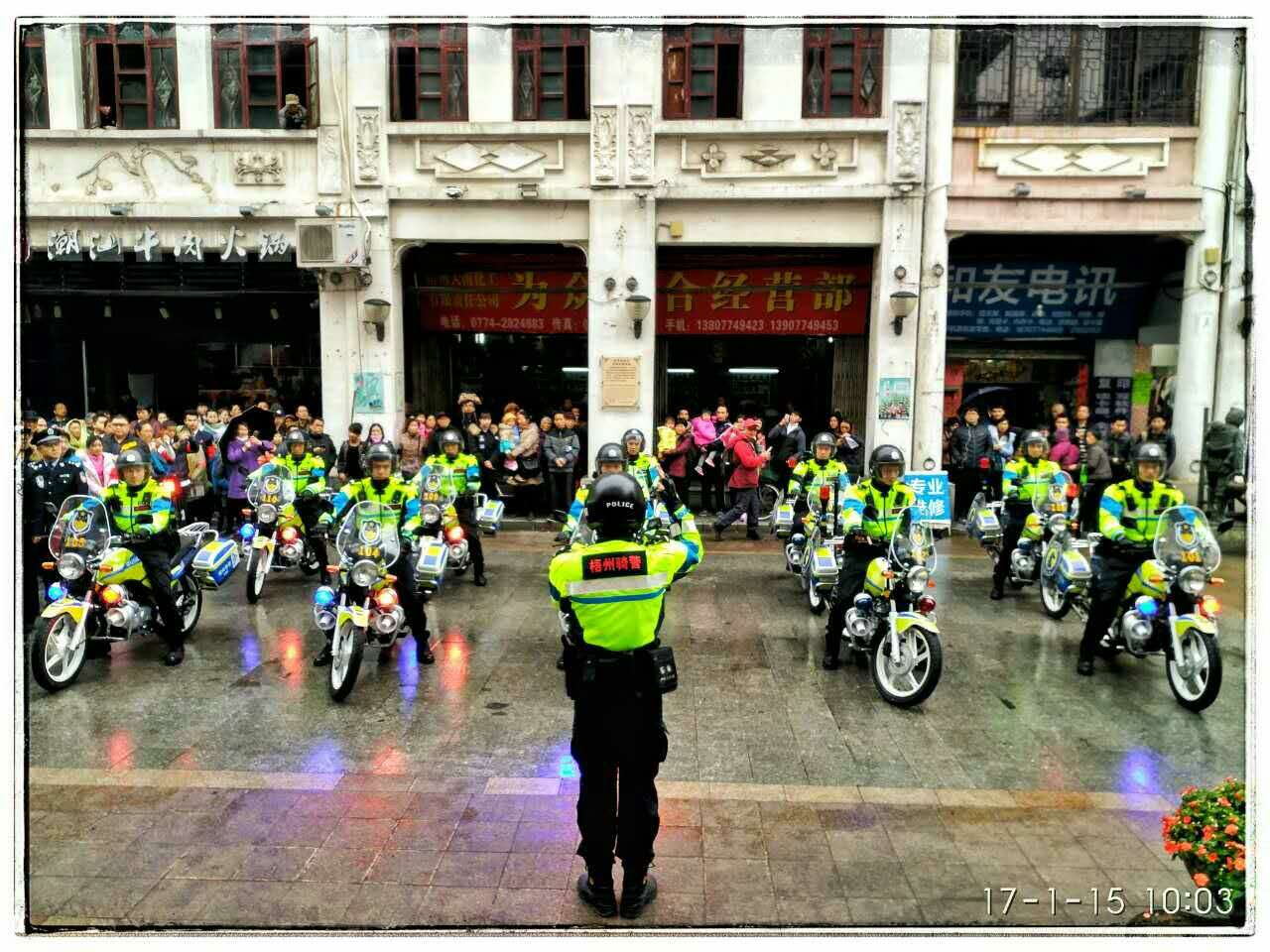 仪式上,万秀区政法委书记张国辉致辞,万秀区区委蓝盛新书记、梧州市公安局梁志伟副局长出席仪式,并分别为骑楼城红袖章驿站、万秀特巡警大队巡查驻点揭牌。随后,万秀区特巡警大队举行了骑警队发车仪式,10名骑警队员正式投入街面巡逻。城南街道办书记张娜随后介绍了骑楼城红袖章队伍建设情况、红袖章驿站基本功能和此次活动的背景,万秀特巡警大队何山大队长介绍了通过红袖章警方、社区、商家、居民四方合力共建平安社区的模式。