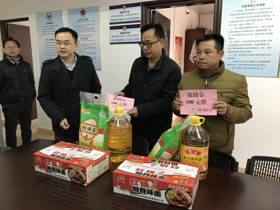 春节前夕,市司法局副局长覃建华、社区矫正和安置帮教科张巧燕科长一行五人到了我局富民、角嘴、东兴三司法所,对2名家庭困难的社区服刑人员进行了节前的慰问,并为他们送上米、油、面和慰问金,详细询问他们的家庭情况、与他们亲切交谈,然后叮嘱他们好好工作,安心改造,同时照顾好家人,过一个安定、祥和的新春佳节。