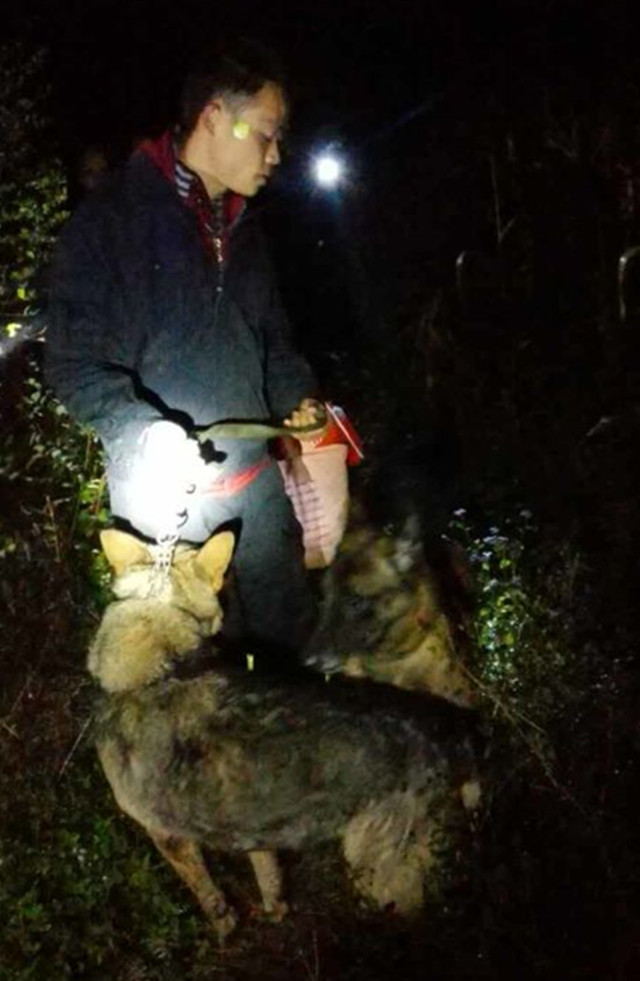 蒙山县分局刑侦大队技术人员与警犬等对小女孩们的行踪进行寻找
