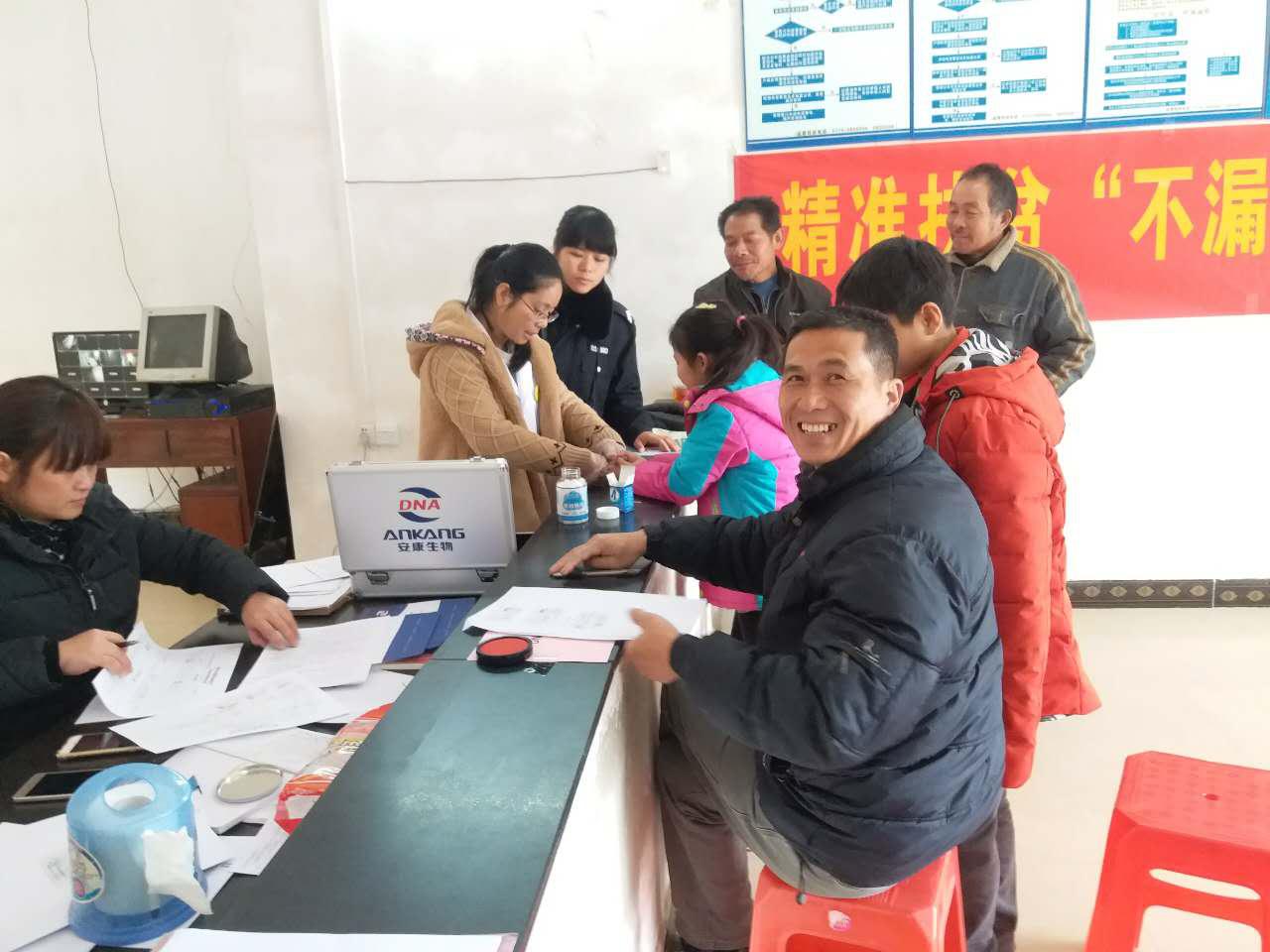 2月24日,倒水镇政府携手南宁市金盾司法鉴定所的工作人员聚集倒水派出所,与派出所工作人员一起开展集中采集DNA鉴定样本活动,为倒水镇辖区的9户贫困家庭共12名无户人员提取生物检材。