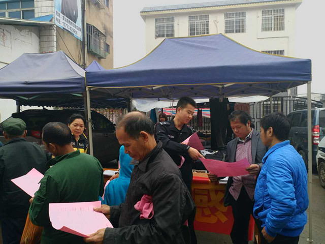 为进一步提升群众的安全感满意度,广泛争取群众对公安工作的理解和支持,从3月份开始,蒙山县公安局新圩派出所开展提升群众安全感满意度专题宣传活动。新圩派出所联合新圩镇政府综治办一起“到街道,下村庄”开展活动。活动中,民警通过悬挂横幅、发放宣传资料的方式宣传“神剑1号”、“神剑2号”专项行动,并对社会治安状况以及新圩所在打击违法犯罪活动所取得的成效,防盗、防抢、防骗等安全防范知识进行宣传,以及对自治区民调中心开展群众安全感满意度的访查流程、内容进行了详细解读,吸引了广大群众驻足观看,纷纷上前咨询。活动期间,民警与政府综治办工作人员热情地接待每一位前来咨询的群众,耐心解答群众的问题,同时给予一些安全防范的建议,并就新圩派出所如何落实措施做好下一步工作谈了想法,并征求群众对公安工作的意见和建议。