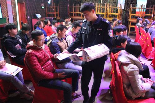 针对娱乐场所人员相对复杂的情况,城东派出所所长吴凌云以上法制课的形式,给业主、工作人员介绍了几种疑似吸毒的特征及身体反应,并普及相关法律知识。让娱乐场所工作人员在日常工作中懂得如何鉴别涉嫌吸毒的症状,及时报告公安机关。
