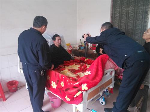 听到求助后,城西派出所马上安排民警和协警来到辖区上奇社区高某森的家中,为其办理身份证采集相片业务。民警到达高某森家后,发现他躺在一张病床上,身着一套医院的病人衣服不符合二代身份证照相要求,为了顺利采集相片,民警用热水帮他擦干净身体并换上一套干净的衣服,把病床的上半部分升起来,其他工作人员在他左右两侧用手扶住他,避免他滑下来。民警抓准时机,用相机对准高某某咔嚓、咔嚓……不到几分钟相片就顺利采集完成了。