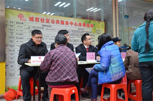 在龙圩区城西社区,园区司法所结合自身工作的特点,以普法宣传和法律咨询为切入点参与到党员双报到活动中,活动中向社区居民发放人民调解、法律援助、公证等涉及民生方面的普法宣传资料,积极为居民解答其遇到的法律问题。