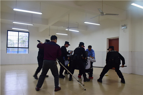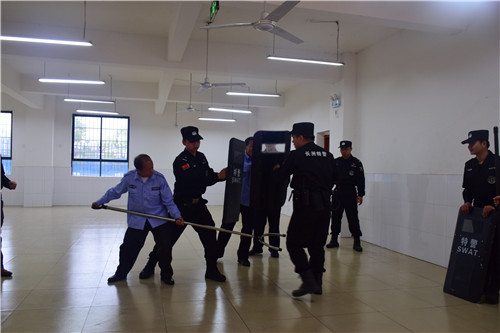 此次开展的活动分三个方面:一是对学校的门卫、保卫科工作人员进行盾牌、警棍、钢叉使用的教学和实际操作,从根本上提高校园保卫人员的防护能力;二是进行涉暴恐情景演练,情景设置为:一名陌生男子在未经学校门卫允许情况下强行入校,学校值班老师发现后立即拉响警铃,并保护学生进入安全区域;另一方面,学校门卫、保卫科使用钢叉、盾牌、警棍等警用安防装备对暴徒进行先期防卫,阻止暴徒接近学生,并迅速报警,辖区特巡警大队民警闻警而动,第一时间到达现场进行处置,处置过程中,民警利用警务战术,迅速制服暴徒;三是由法制校长对学校师生进行法制宣传教育,通过对法律的认知、懂法、守法三个方面全面普法,对个人自我防护意识进行灌输,以事例剖析、提问等方式进行互动交流,学习与提高法律知识。