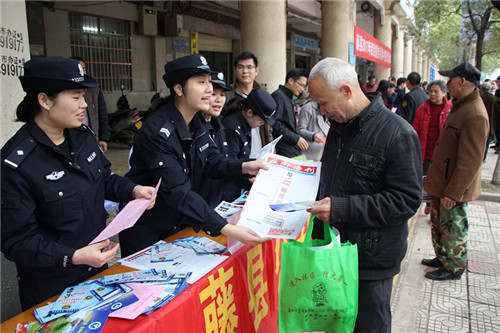 民警通过现场接受咨询、讲解、发放宣传资料、赠送宣传品等形式,宣传《禁毒法》、《反恐怖主义法》、《反家庭暴力法》、《未成年人保护法》、《预防未成年人犯罪法》和广西《禁毒条例》等法律法规,弘扬法治精神,不断增强人民群众法制观念。同时,现场解答群众在运用法律过程中的疑惑和办理户籍方面所需要的手续、流程等内容。