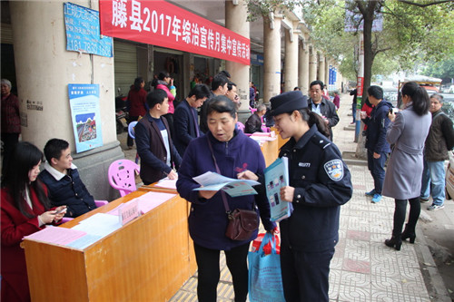 为深入贯彻党的十八大和十八届三中、四中、五中、六中全会精神,进一步加强社会治安综合治理工作,深化平安藤县建设,3月17日上午,藤县公安局组织刑侦、治安、禁毒、法制、国保等单位民警、协警到河西防洪堤街道开展综治宣传月活动。