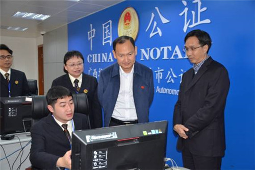 调研中,王惠琴副厅长、陈荣茂副市长对梧州市司法局主动作为,把“一处两中心”搬迁到市中心临街路段办公,为群众提供“敞开式”“一站式”服务的做法给予充分肯定。希望在今后的工作中,公证员、律师、基层法律服务工作者,要以饱满的热情、扎实的作风,为群众提供高效便捷公证、法律援助等公共法律服务;要把“一处两中心”打造成梧州市惠民便民的窗口,满足群众的法律服务需求;要在新的环境中提升形象、争创业绩,打造具有梧州特色的司法行政工作的品牌、亮点。