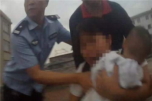 4月8日17时许,藤县公安局和平派出所值班民警发现在派出所对面一幢三层楼的楼顶站着一名年轻妇女,手里抱着一名6个月大的男婴,在楼顶边沿哭泣并扬言要跳楼。派出所值班民警立马带队出警到现场,做妇女思想工作并向县局指挥中心、唐副局长、韦所长汇报情况。随后民警及时疏散楼下围观群众、做好现场警戒工作,并联系县消防、镇政府、卫生院和街委等单位人员前来支援。