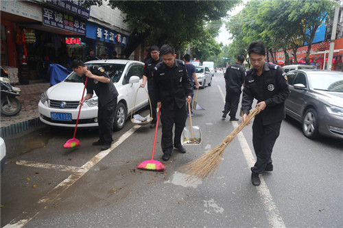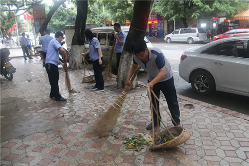 在清洁大扫除过程中,岑溪市公安局的民警、协警充分发扬不怕苦、不怕累、不怕脏的精神,挥舞扫把铁锹,对大中路主街道及街道两边的杂物、积存垃圾、卫生死角、非法广告等进行了全面打扫清理,他们个个积极性强,情绪饱满,有的负责清扫地面垃圾;有的负责垃圾搬运;有的负责排除积水,认真仔细做好清洁工作,做到无死角无残留。
