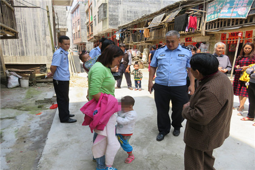 巡逻民警在详细了解情况后,一方面通过天网系统开展查找工作;另一方面组织派出所人员兵分两路,一组到河西菜市场附近一带进行走访询问,一组继续在街面上巡查。经过两个多小时,终于在濛江镇百信好又多超市后背江边找到了丢失的小孩。派出所民警随即通知小孩的母亲到现场认领,见到自己的小孩的那一刻,小孩的母亲胡洁容对派出所民警表示万分感激。