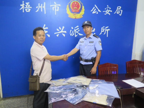 “真是太感谢你们的耐心和真诚了,这么热的天,顶着大太阳到处帮我们找回丢失的货物。”今晚,失主伍先生开开心心地来到东兴派出所向民警致谢。