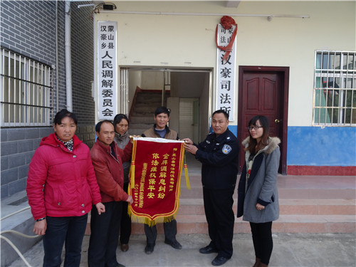去年初,莫文兴为外地砍伐工人调解争取历时两年多的5000多元工程尾欠款。当30位农民工领工钱到手的时候流下了感激的眼泪,特做了一幅“金牌调解息纠纷 依法维权保平安”的锦旗送给了汉豪乡司法所以示表示感谢。