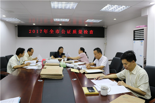 由市司法局公证管理科科长、副科长及各公证处负责人组成的检查组,每个公证处抽检了30份案卷共200多件公证事项,从“申请”、“受理”、“审查”、“发送”和“归档”等方面全面检查公证卷宗,逐项评查,量化打分。通过抽查发现,各公证处的质量规范管理与往年相比有新的提升,办证各环节基本达到程序规则的规定,在去年检查中发现存在一些问题得到纠正。但仍然发现了一些问题,如公证文书措词表述欠妥、申请表上应填写事项存在漏填、询问笔录不够详细针对性不强等,检查组及时指出问题,并责令相关公证处进行了整改。检查组还就办理公证事项的经验和教训与公证处进行了交流。