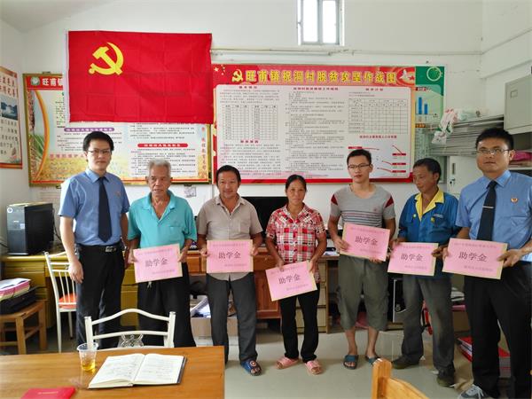 “金秋助学,扶贫济困,关注未来”。9月12日,2017年祝洞村贫困大学生助学金发放仪式在祝洞村村委会举行,梧州市检察院检察官在仪式上发放助学金,6名寒门学子受助。梧州市检察院的结对帮扶干警为他们发放助学金,在仪式上对今年考上大学的寒门学子表示衷心的祝贺,希望他们坚定理想信念、奋发图强、刻苦学习,珍惜这来之不易的机会,早日成才,同时要懂得感恩,饮水思源,铭记党和政府的恩情。受助学子及其家长表示感谢,并表示要好好学习,早日为自己的家庭和家乡脱贫致富作出应有的贡献,回报关心帮助过自己的爱心人士,把爱心接力棒传下去!