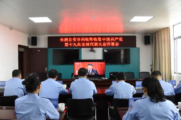 长洲公安分局各科室、派出所、大队民警、辅警通过电视、网络、手机观看大会盛况。