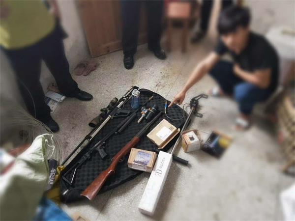 时间一分一秒地过去了,在经过八个多小时日晒雨淋的伏击守候后。犯罪嫌疑人终于进入了民警的视线,只见他在门前左顾右盼、四处张望认为平安后,才踏进家门。“上”。那一刻,随着带队的梁副所长一声令下,伏击守候的民警犹如弦上的箭冲了出去,嫌疑人梁某还未返应过来时,已被民警抓获。经细致地搜查,民警在梁某家中搜出了枪支疑似物三支、钢珠两千多粒。