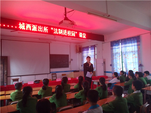 为进一步提高小学生法制观念、安全防范意识,加强自我防范能力, 2017年11月8日下午,梧州市公安局城西派出所民警来到龙圩镇中心校,为学生们送去了一堂生动的安全防范教育课。