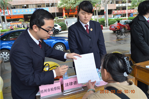 他经常利用每年的政法宣传周、举报宣传周、“西江党旗红”党员志愿服务活动等节日和活动为契机,走上街头、走进乡村、走进社区、走进学校、走进群众的家中,参加义务法律服务活动 50余次,服务和帮助了群众280多人次。