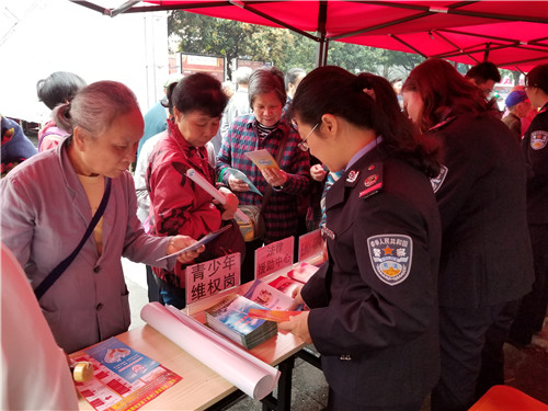 长洲区司法局干警向群众发放法治宣传资料