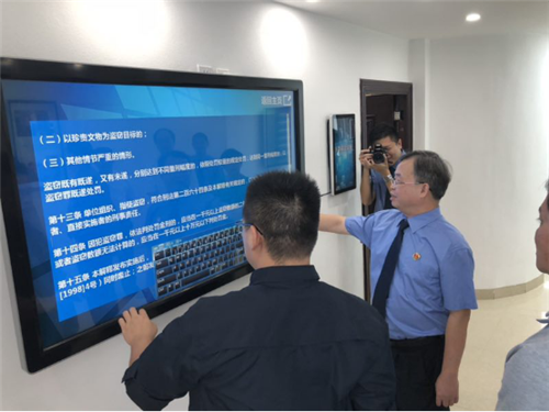 万秀区人民检察院干警现场指导使用12309检察服务中心的触屏查询法律法规