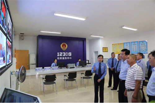 龙圩区人民检察院检察长带领代表们参观12309检察服务中心并作介绍