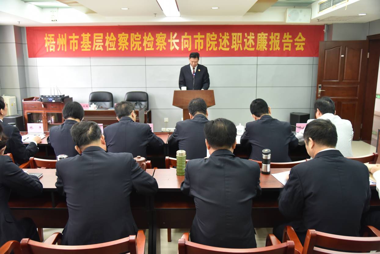 根据《中华人民共和国人民检察院组织法》《最高人民检察院关于检察机关领导干部述职述廉的暂行规定》和《最高人民检察院关于下级人民检察院检察长向上一级人民检察院述职述廉报告工作的规定》等文件要求,2018年10月16日,梧州市人民检察院召开2018年度基层院检察院检察长述职述廉报告会,对基层检察院检察长“职”“廉”进行现场把脉问诊,促进基层检察院,督促与指导各基层院检察长全面正确履职。会议由市检察院党组书记、检察长黄昱主持,市院领导班子成员、检委会专职委员、副调研员、各内设机构负责人参加会议。