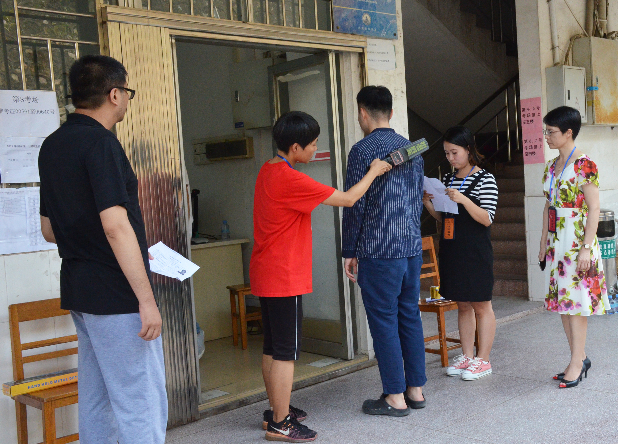 对考生进行考前安检