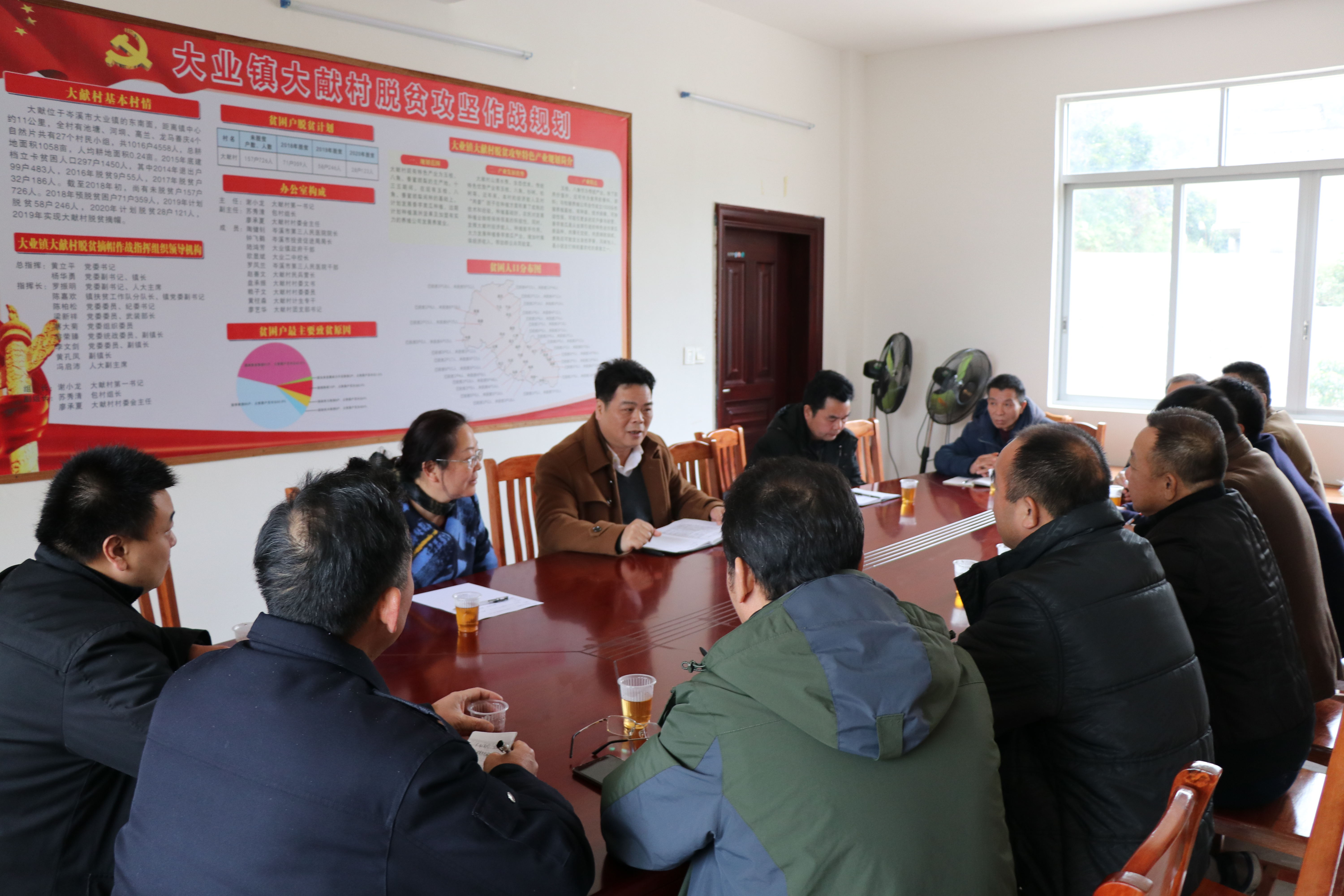 随后,黄昱检察长一行来到大献村委会,面对面听取各帮扶单位2018年脱贫攻坚工作成效汇报,研究2019年脱贫攻坚工作,帮助协调解决大献村实际困难和问题。